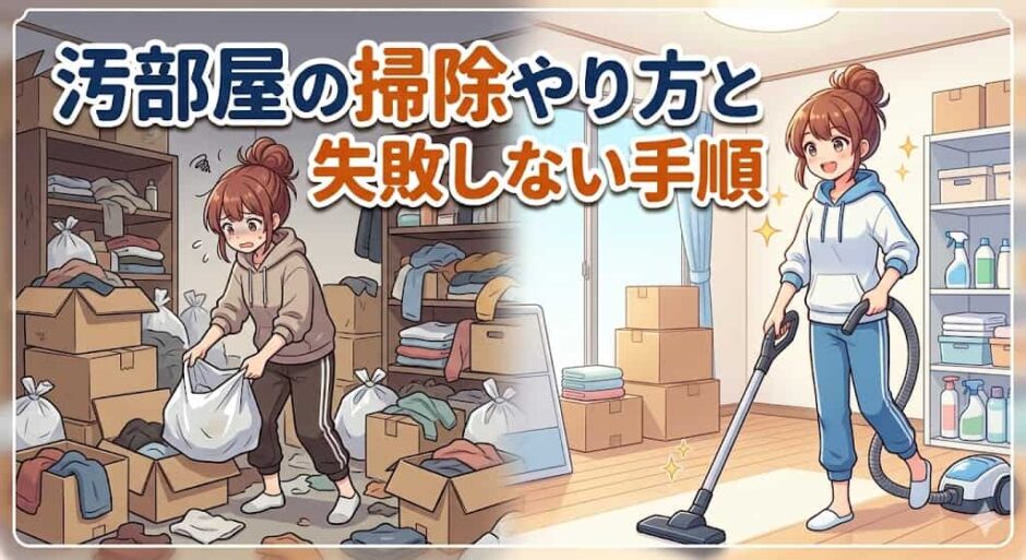 汚部屋の掃除で挫折する最大の原因は「正しい順番・やり方を知らないまま始めてしまうこと」です。この記事では、汚部屋・散らかった部屋を一から掃除するための正しいやり方を、汚さのレベル別・場所別にわかりやすく解説します。「やる気が出ない」「続かない」という方向けのメンタル面のコツもお伝えします。