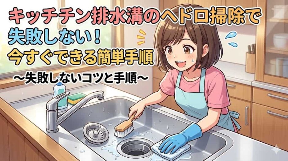 キッチンの排水溝に発生するヘドロは、放っておくと悪臭・詰まり・カビの原因になります。この記事では、ヘドロが発生するメカニズムから、道具の選び方、具体的な掃除手順、再発を防ぐための習慣まで、まとめて解説します。