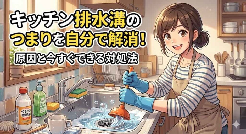 キッチンの排水溝が詰まると、料理や洗い物のたびにストレスを感じます。でも、多くのケースは業者を呼ばなくても自分で解消できます。この記事では、詰まりの原因の見極め方から、自分でできる具体的な解消手順・使える道具・再発防止策まで、まとめて解説します。